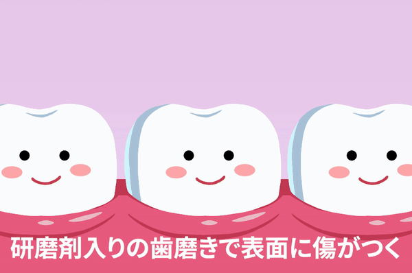 게다가 시중에 판매되는 치약을 사용하면 연마제의 영향으로 치아가 점점 깎여지고, 그로 인해 오히려 침착이 쉬워지는 거에요.