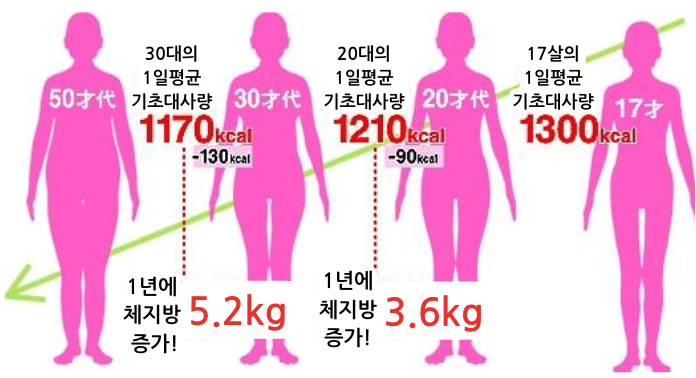 일반적으로 사람은 나이가 들수록 “살이찌기 쉬운 체질로 변한다” 라고 알려져 있으며,