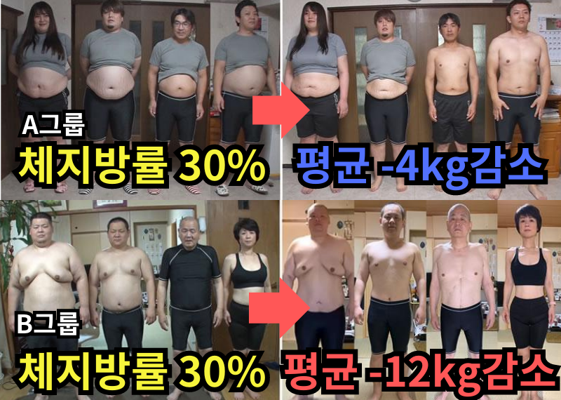 3개월이 지나자, 매일 웨이트트레이닝을 한 ‘그룹A’는 체지방률이 평균 25%로 감소.