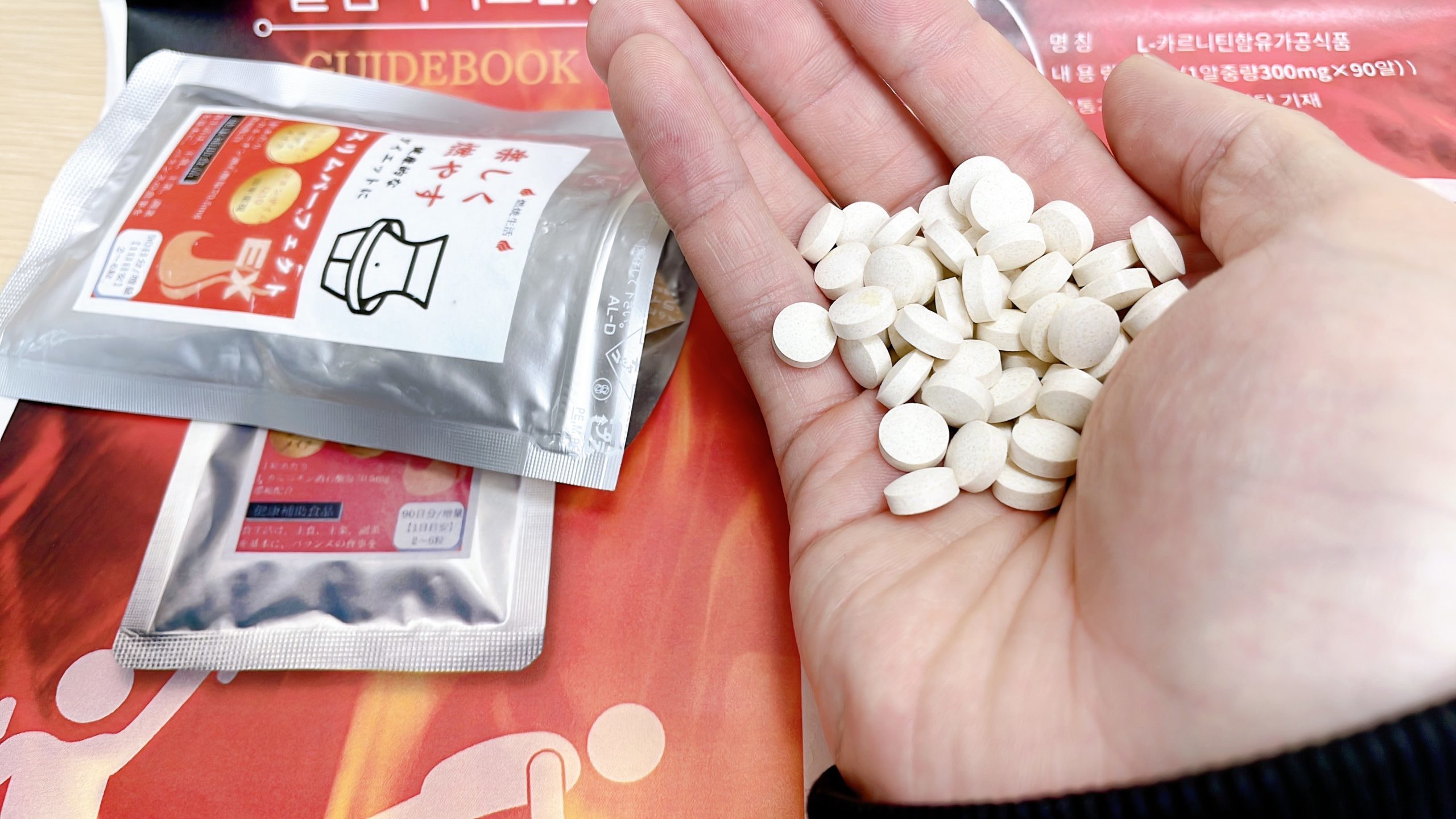 속에 들어있는 보조제는 이런 알약타입이었습니다. L카르니틴으로 꽉 차 있어 보이네요!